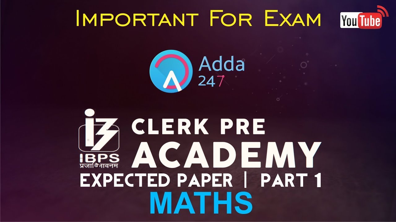 IBPS CLERK PRE ACADEMY - In this video we shall discuss Expected Maths Paper Of IBPS CLERK PRE 2017 (Part -1). This session is very important for all aspirants\n\nPLAYLIST FOR BANK AND SSC EXAMS - https://www.youtube.com/channel/UC1L2JoMpcY6MRLhFd3gg5Xg/playlists\n\nAdda247 Youtube channel is India's most popular channel for Online Coaching for IBPS Bank PO Exams and Online Coaching for SSC CGL.\n \n1.To buy Banking & SSC Video Courses of Adda247 - in SD Card or Tablet click here - http://bit.ly/ViDEOs \n\n2. Download Adda247 App (India's No.1 App for Bank & SSC Exams) - http://bit.ly/adda247\n \n3. To get all latest videos in your mailbox, subscribe to our youtube channel - https://www.youtube.com/adda247live\n \n4. Get all updates on facebook, like us our facebook page - https://www.facebook.com/adda247live\n \n5. Join us at twitter - https://twitter.com/adda247live