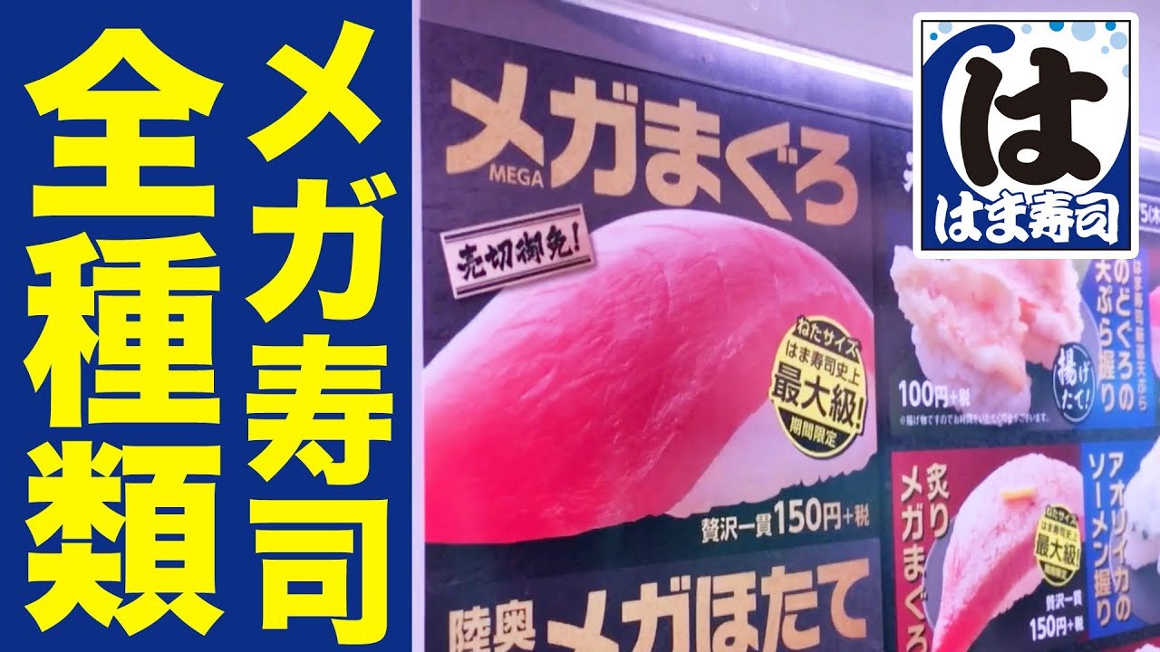 どれくらいメガなのか!?食べてみた!!\n\n☆お店情報\n【はま寿司】さま\nhttp://www.hamazushi.com/hamazushi/index.html\n\n☆チャンネル登録おねがいします\nhttp://www.youtube.com/user/haijimovie\n\n☆はいじぃマグカップ\nhttp://www.yoshimoto-goods.com/\n\n☆はいじぃの【LINEスタンプ】\nhttps://store.line.me/stickershop/product/1004770/ja\n\n☆はいじぃのセカンドチャンネル\nhttps://www.youtube.com/user/haijigame\n\n■facebook https://www.facebook.com/tomotake.haijima\n■Twitter  hai_g\n■Instagram hai_g\n■ブログ http://blogs.yahoo.co.jp/haijima_blog\n\n☆楽曲提供\n【Asylum audio】さま\nhttp://asylum-audio.com\n\nご視聴ありがとうございます!\nはいじぃと申します。\n\n体当たり企画やゆるゆるロケや、\nこの動画がみなさんの毎日の息抜きになればと思っています。\n\n目指せチャンネル登録50万人!