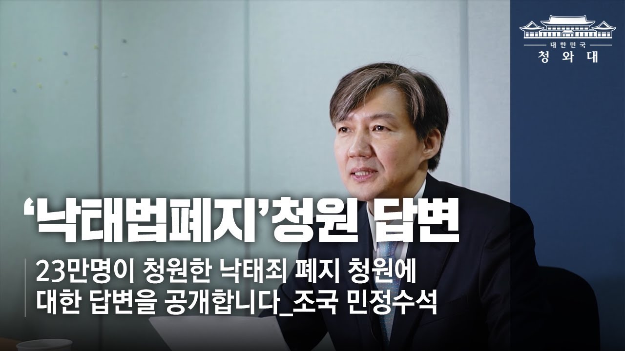23만명이 청원한 낙태죄 폐지 청원에 대한 답변을 공개합니다. 정부는 내년에 임신중절 실태 조사를 실시, 현황과 사유에 대해 정확히 파악하기로 했습니다. 임신중절 실태조사는 2010년 조사를 마지막으로 중단됐다가 8년 만에 재개됩니다. 실태조사 결과를 토대로 관련 논의가 한 단계 진전될 것으로 기대합니다. 헌법재판소도 다시 한 번 낙태죄 위헌 법률 심판을 다루고 있어 새로운 공론장이 열리고 사회적, 법적 논의가 이뤄질 전망입니다. \n아시다시피 이 문제는 매우 첨예한 논란이 벌어졌던 사안입니다. 용어조차 조심스러워서 ‘낙태’ 대신 '임신중절'을 사용했습니다. 어려운 문제이지만 국민이 답을 청하셨고, 청와대 비서실은 관련 부처와 함께 여러 차례 회의를 갖고 의견을 모으고자 노력했습니다.\n이 답변이 모두에게 흡족하지는 않을 수 있습니다. 다만 이 문제에 대해 논의를 이어가는 출발점이 되기를 기대합니다.