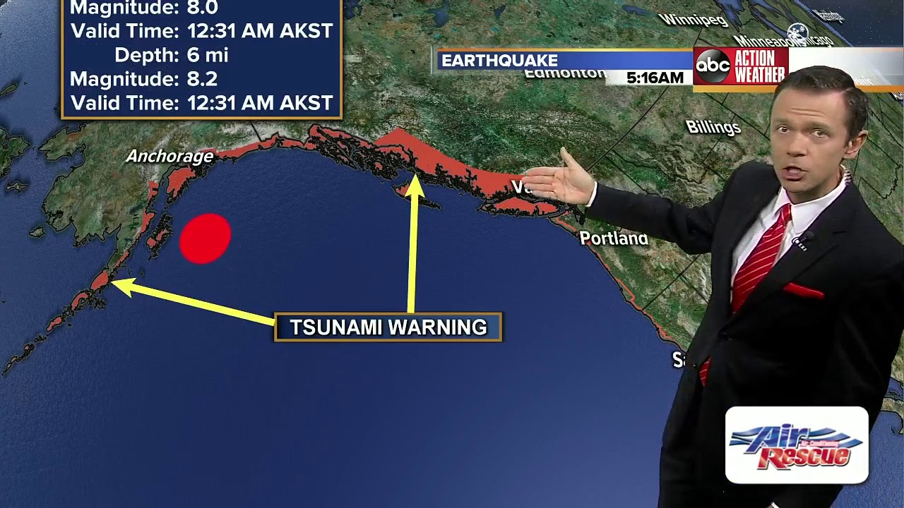 A tsunami warning has been issued after a magnitude 8.2 earthquake struck off the coast of Alaska.